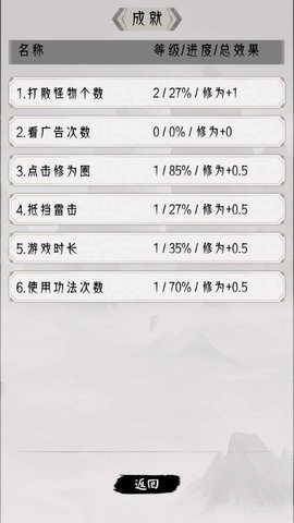 5、每一世修炼结束,都可以在主界面点击成就,查看自己累积的成就。