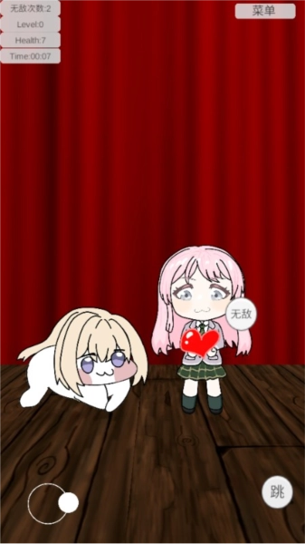 3、右边操控无敌和跳跃;