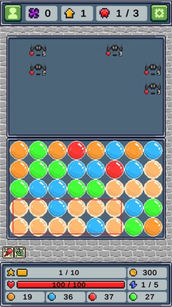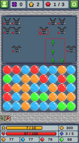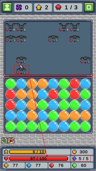 4、玩家在进行消除操作时,务必留意体力的消耗情况。一旦体力消耗殆尽,便会进入敌方回合,此时怪物将会向前行进一格。要是怪物越过特定界限,就会对我方发起攻击,导致血量减少。一旦血量被扣光,游戏即宣告失败,玩家需重新开始。