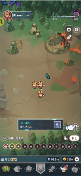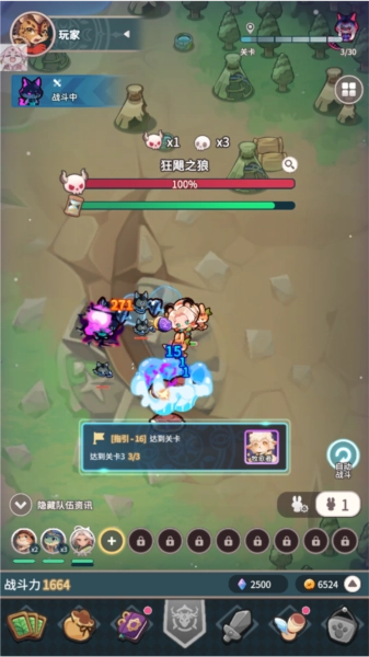 2、玩家通过点击左上角战斗按钮,即可开启关卡征程。关卡中不仅有形态各异、实力不凡的小怪阻挡前进道路,更有强大无比的 Boss 镇守。