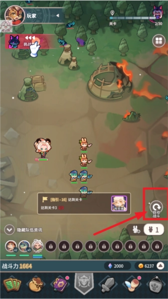 1.打开爪爪远征游戏,点击右下方自动战斗,可以放置战斗