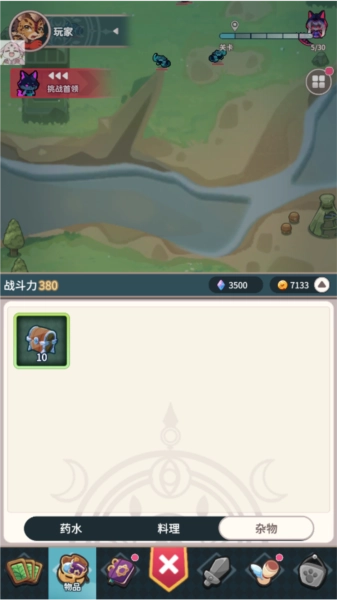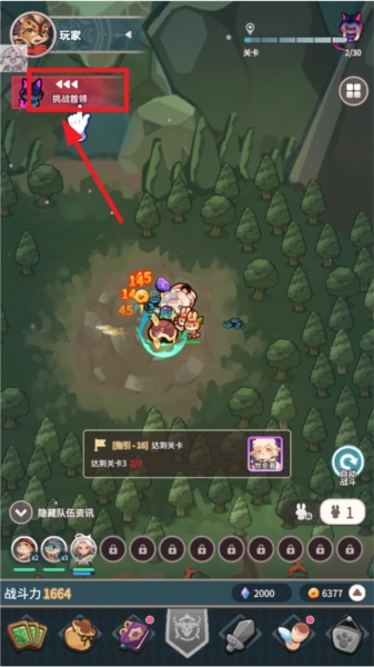 2.不断地战斗,到达一定的等级后,可以点击左上方挑战首领