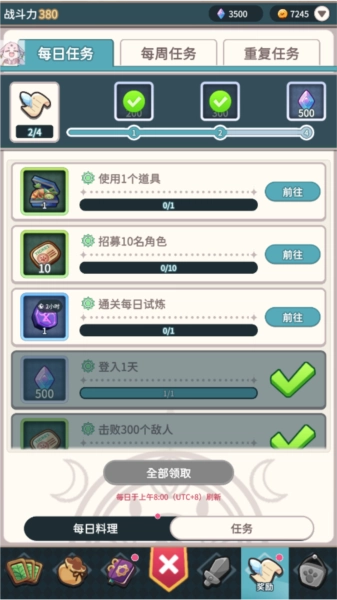 7.奖励界面可以查看每日任务,一键领取奖励