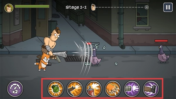 3、踏入【Stage-1-1】关卡,遭遇敌人之际,点击下方红色框内的技能图标,施展技能对僵尸展开攻击。