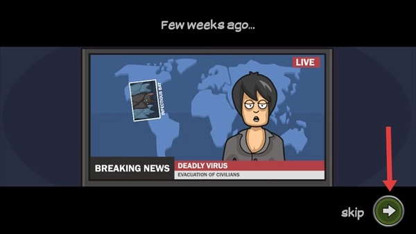 1. 启动游戏,开场会呈现新闻剧情,点击【skip】按钮进行跳过,从而迅速进入游戏实际操作阶段。