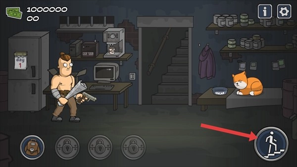 2、来到地下基地场景,点击右下角人物的上楼梯图标,操控角色前往地面关卡进行战斗。