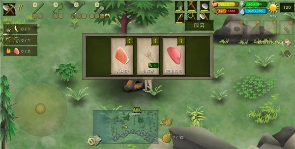 ③、工具制作顺序,先做石斧在做石刀制造竹叉和弓箭后可以去打青蛙,叉鱼,打鸟,打兔子