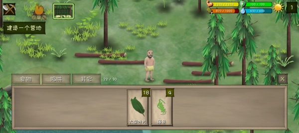 二、【建好营地以后就出去找材料顺便找吃的,边找边吃,晚上回去就做工具做陷阱】