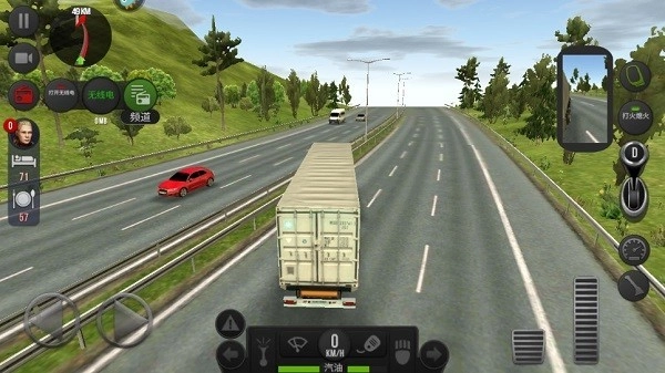 4、进入驾驶模式后,第一步要点击右侧的打火按键启动卡车,接着把档位挂到D档就能起步,再点击下方的油门便可发动汽车。特别提醒,上坡启动这件事非常重要,所以强调三遍:上坡启动,上坡启动,上坡启动。