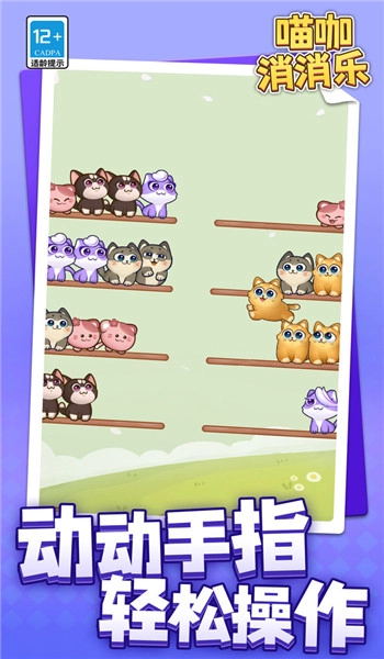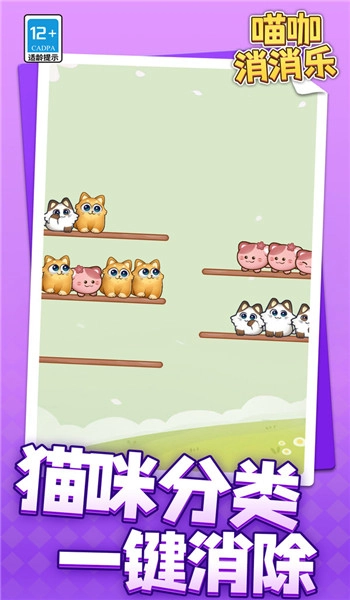 1. 每一个关卡皆具备独特的背景以及猫咪组合,玩家需依据关卡的要求来完成猫咪的分类。