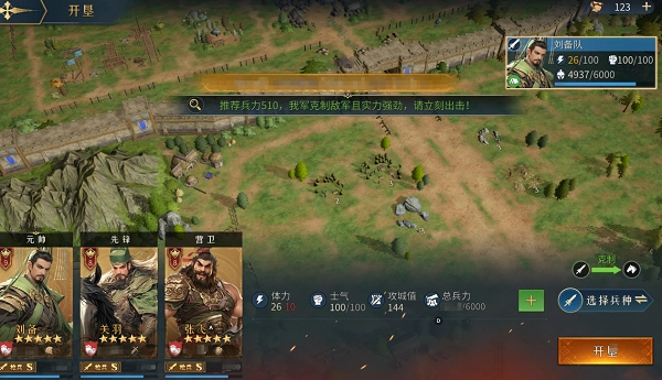 获得大量技能点后,尽可能地升级桃园队的技能。桃园队技能搭配:刘备学习治疗类技能,关羽学习反击、受到伤害造成效果类技能(没有可以学输出、减伤、自身恢复的技能)、张飞学习输出技能。后续可以持续用这个队伍跟随主线做任务。有任务需要攻占沙盘地块时,再攻占沙盘地块,若没有则一直攻打内城土地。