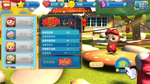 创新打造变身系统:深度借鉴《猪猪侠之五灵守卫者》里五灵变身的精彩情节,让赛车在比赛的紧要关头实现变身。赛车变身后,不仅速度会急剧提升,还能够将沿途的其他角色撞晕,同时释放出无敌加速技能。就如同猪猪侠变身成五灵形态后,能瞬间增强赛车的性能,扭转比赛局势,为玩家带来极致畅爽的竞速感受。