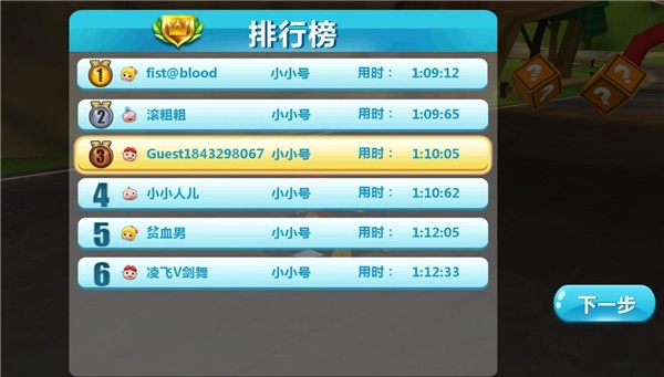 5、不要追求第一名,而是优先达成关卡目标。AI的车辆比我们优秀的多,不使用道具很难获得第一名,而道具是收费的,我们应该将重要道具用在难关,比如冠军赛