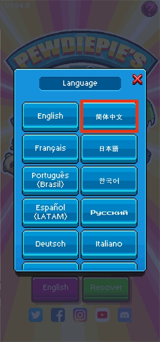 1. 下载并进入主播模拟器游戏,点击页面下方的“English”。