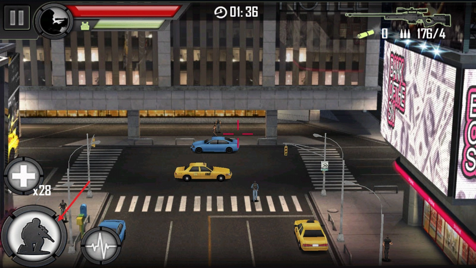 2、在瞄准过程中,准心会有小幅度移动,点击下方的心电图按钮,能让准心短暂稳定下来,此时进行射击,精准度会更高。