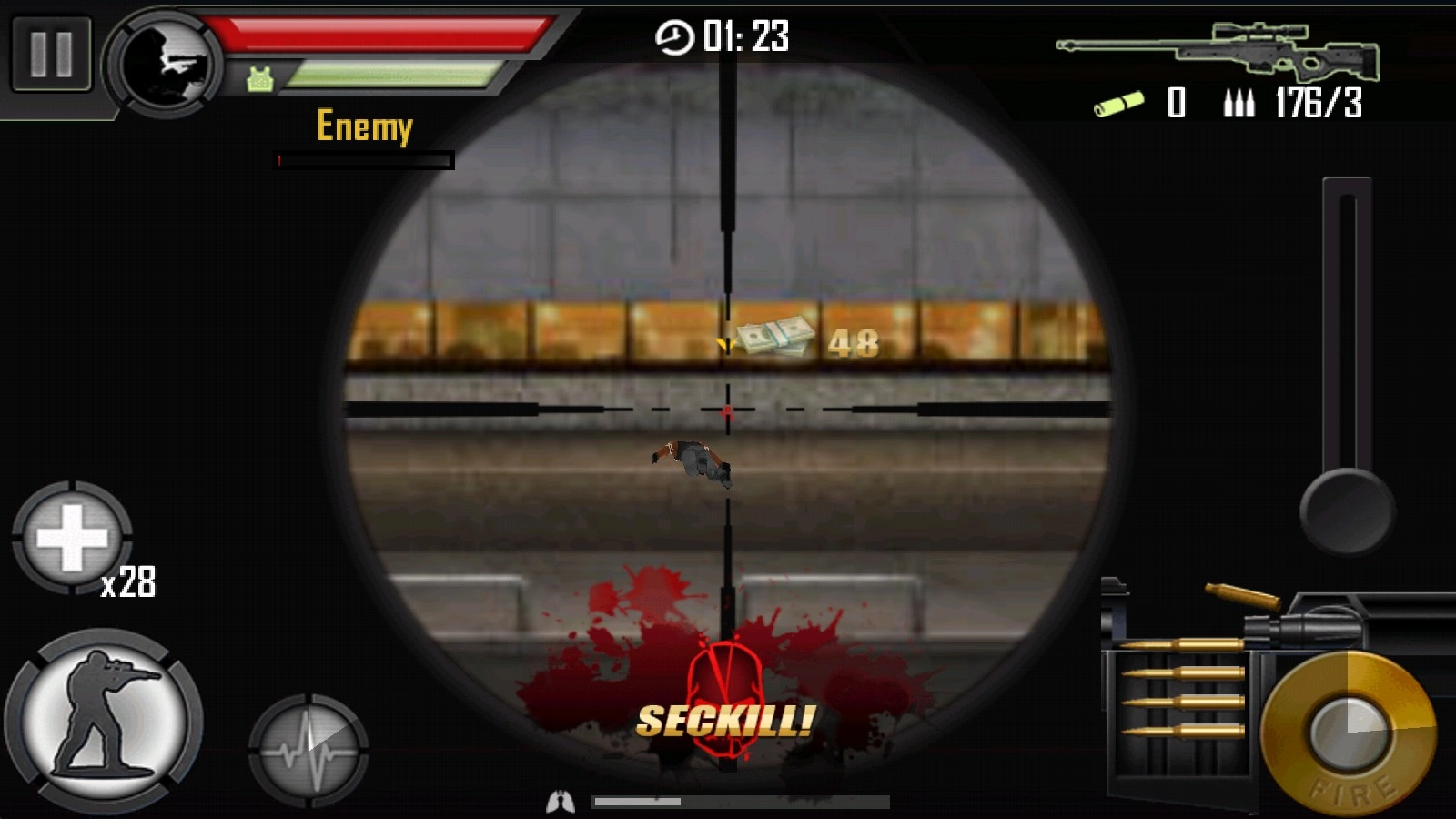 3、在不同的场景中寻找,通过精准的瞄准完成击杀任务。