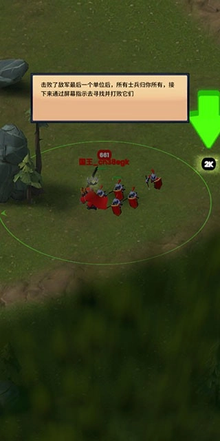 3、击败了敌军最后一个单位后,所有士兵归你所有,接下来通过屏幕指示去寻找并打败它们。