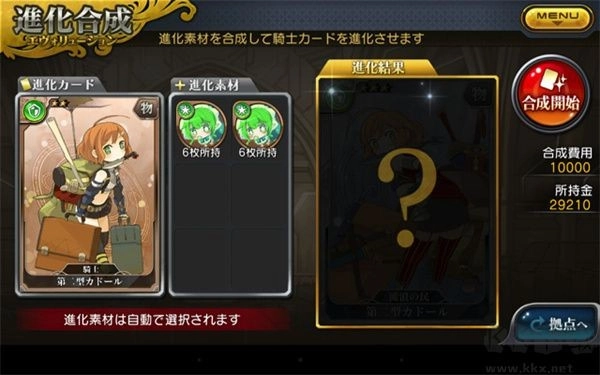卡牌的稀有程度是可以透过卡片的进化合成,提升1个阶级的。满足了一定条件的卡片就能进化到下一个阶级。