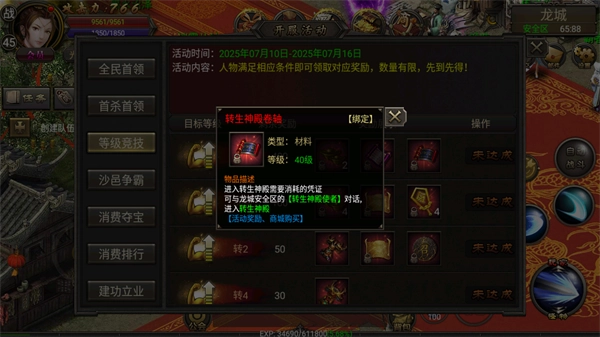 2、装备回收:低级装备可通过回收获得大量经验,每次击杀怪物掉落的装备(无论高低级)全部捡起,攒满背包后到龙城装备回收员处回收。