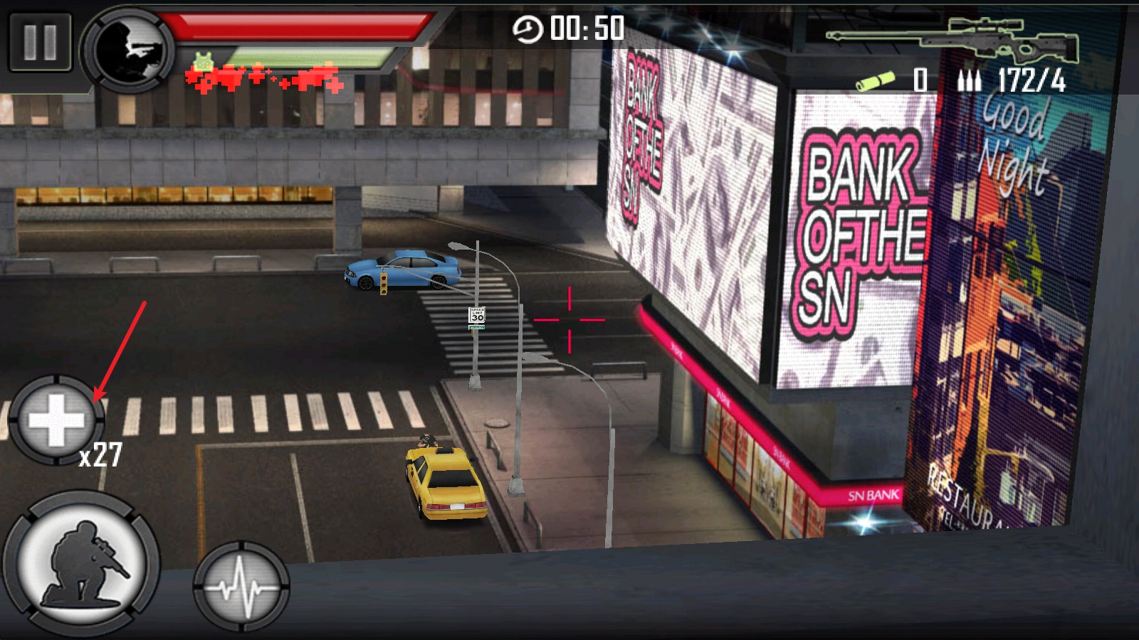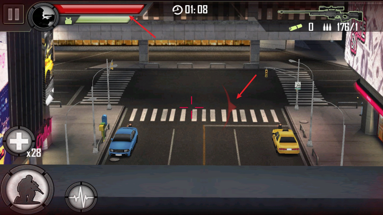 2、瞄准过程中,准心会小幅度的移动,点击下方心电图按钮可以短暂的稳定下来,随后进行射击会更加准确。