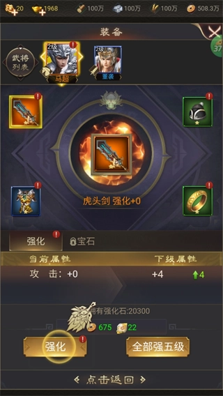 6、利用获得的物质培养武将给武将装备强化。