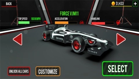 各种各样的赛车皮肤可供选择。玩家还可以自由修改他们的方程式赛车,以优化他们的性能和完成比赛。