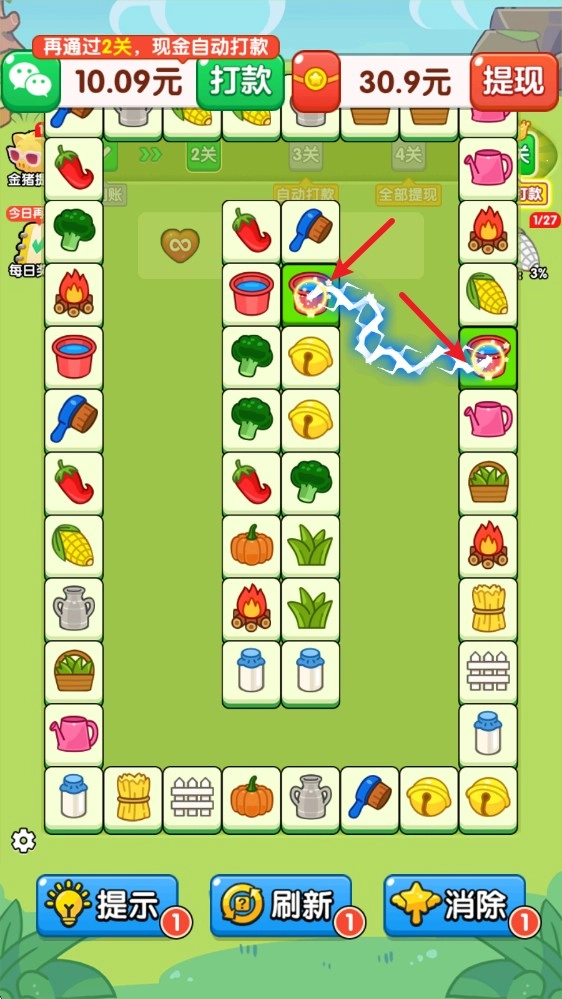 3、下方设有提示、刷新和消除这三种道具,它们能助力你更高效地闯过各个关卡。