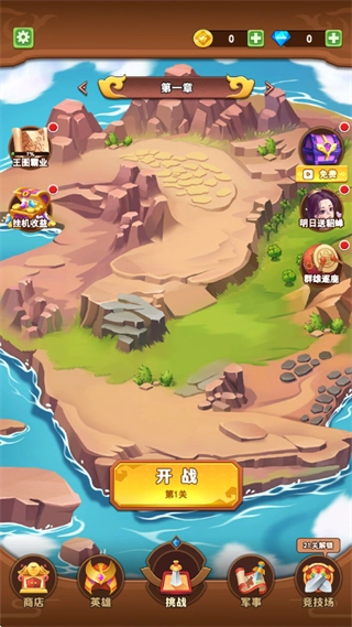 1、进入游戏后,可以点击挑战,通过任务关卡可以获得奖励;