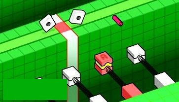 这一关难度不算大,感觉像是GBA运输关卡与NDS组合关卡的融合。操作时,按A键让螺栓有节奏地(间隔一拍)来回弹动,接着瞅准时机,当两个螺帽移动到传送带的红色区域时,同时按下A + B,把螺栓弹出去,使两者组合。此关的难点在于如何做到一心两用,此外,反应速度也至关重要。