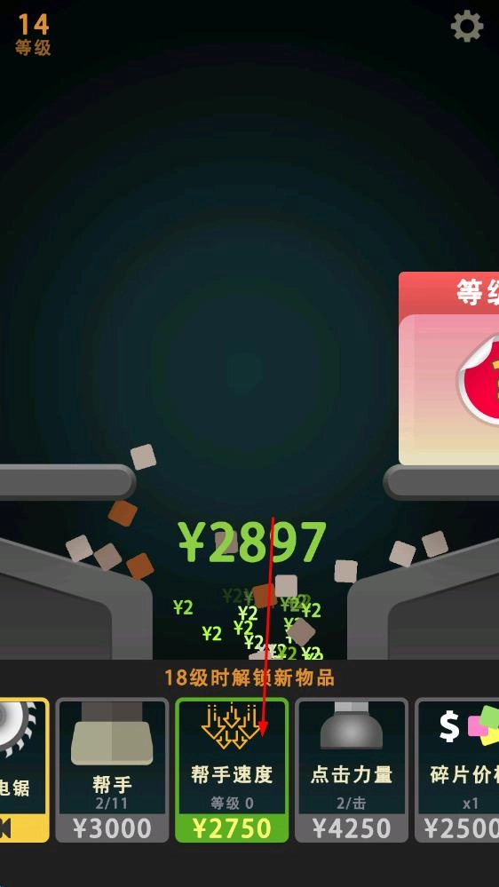 2、游戏中途,粉碎物品获得收益后,可前往升级界面提升粉碎机性能;遇到难粉碎的物品时,使用道具增强粉碎效果,提高效率。