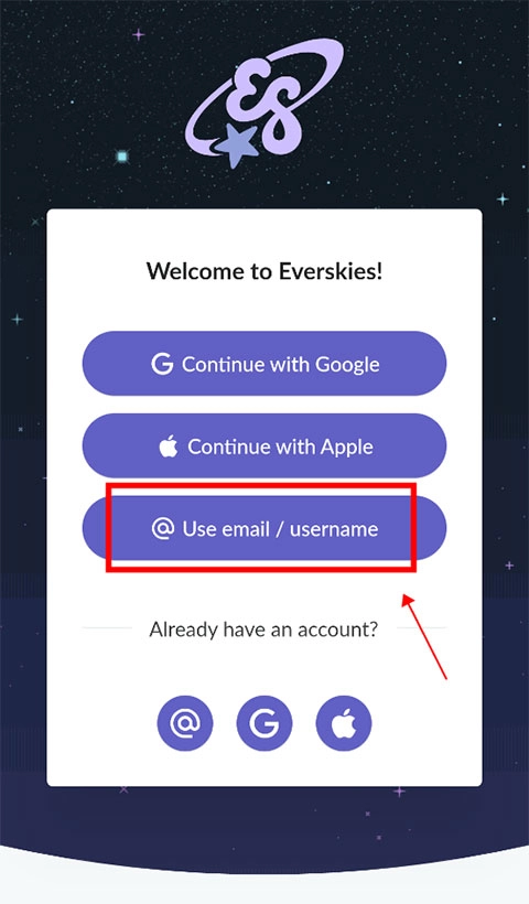 1、首先在本站下载安装好永远的天空虚拟装扮国际版,打开进入等待2~3分钟,选择登录方式“use email”。(不是bug,知识延时,需要耐心等一下)