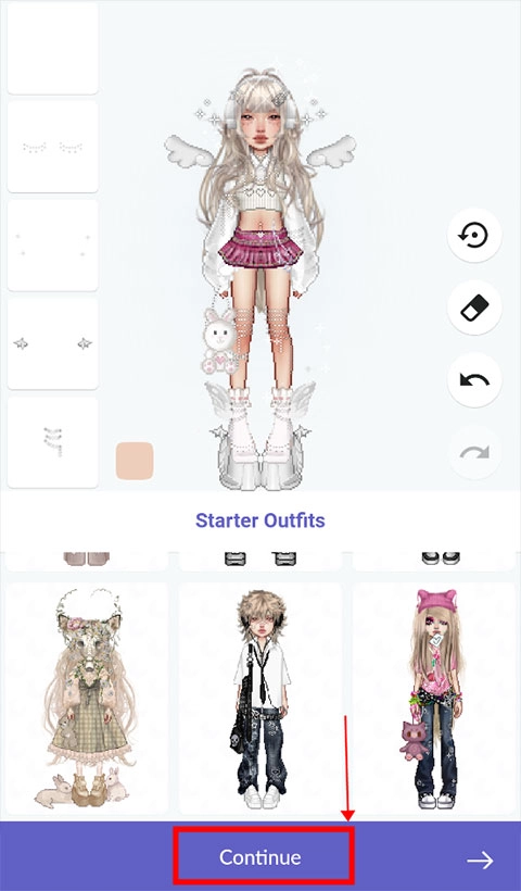 3、人物右侧有上一步和下一步,橡皮可以撤销角色身上的一切装扮。