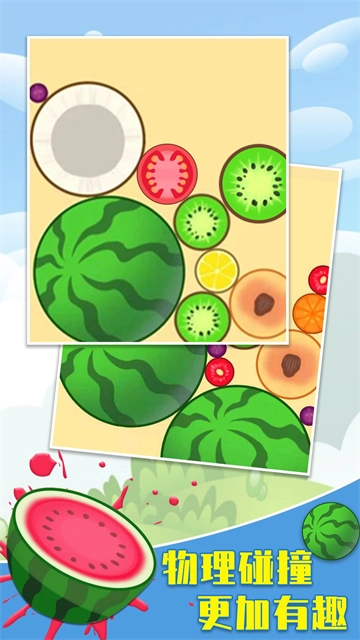 4、物理碰撞系统引入随机动态元素,新水果掉落位置与已有物品产生不可预测的互动,为策略规划增添适量变数保持新鲜感。