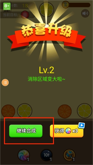 1、通过触控滑动操作移动场内水果,使两个相同品类接触后自动合成更高级水果,连锁合成会触发额外分数奖励。