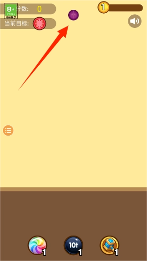 2、通过点击选中目标水果,使其自然坠落到下方放置区域。