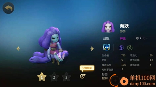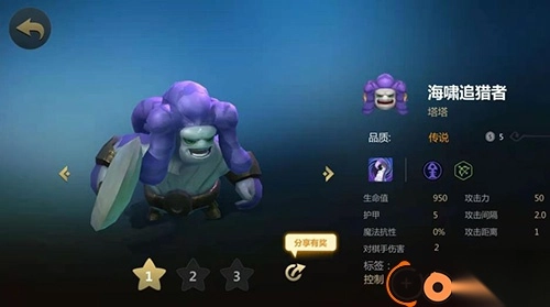 技能:凝视。效果为使4格范围内面朝自身的敌方棋子攻击速度降低20% ,该效果持续3秒。在这期间,若敌方棋子持续面向自身超过2秒,便会被石化2秒。技能冷却时间为20秒。海妖作为猎人阵容前期的控制型棋子,技能作用范围广泛,实用性强。然而,1星海妖的回蓝速度偏慢,要是有回蓝装备,不妨给她配备。等升到2星后,可以将其放置在前排,一般追到2星就可以了。