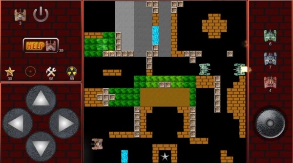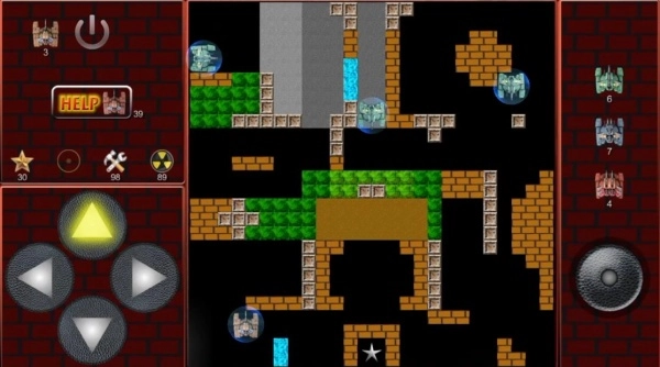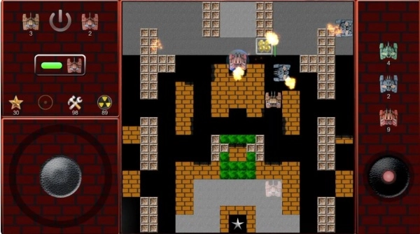 1、操控你的坦克,穿梭在地图上的砖墙、河流、森林和钢墙之间。