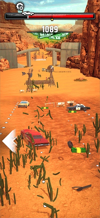 2.在逃亡过程中需要不断撞击场景中的障碍物和建筑,清除道路并获得额外分数奖励。