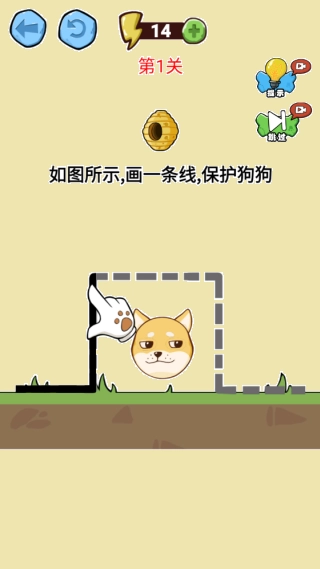 2.玩家的任务是要通过画线的方式来保护狗头不被蜜蜂叮咬。