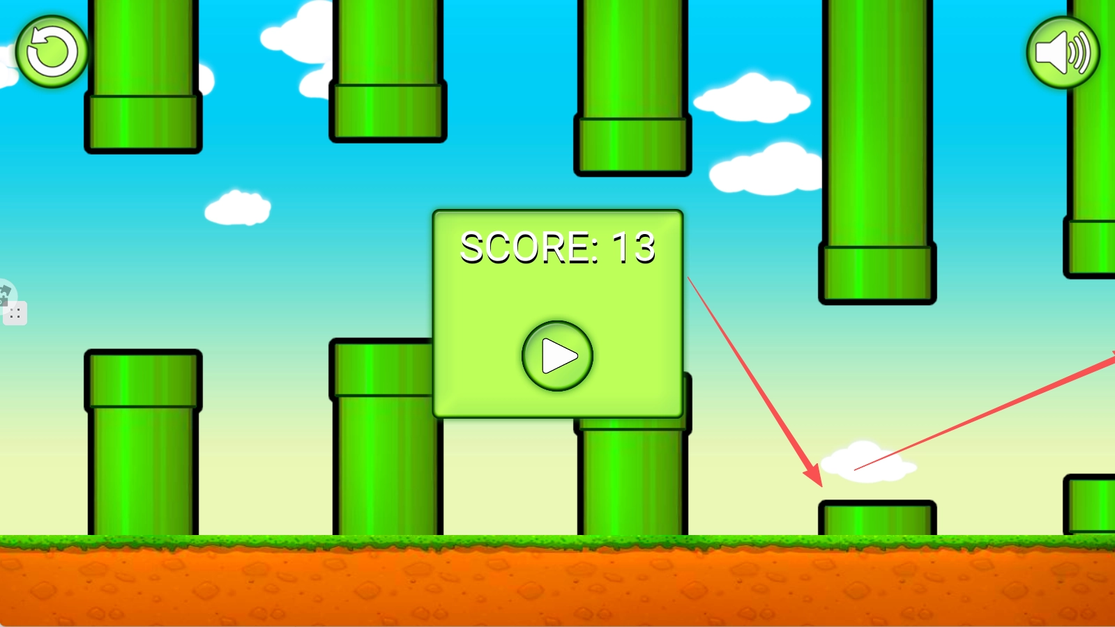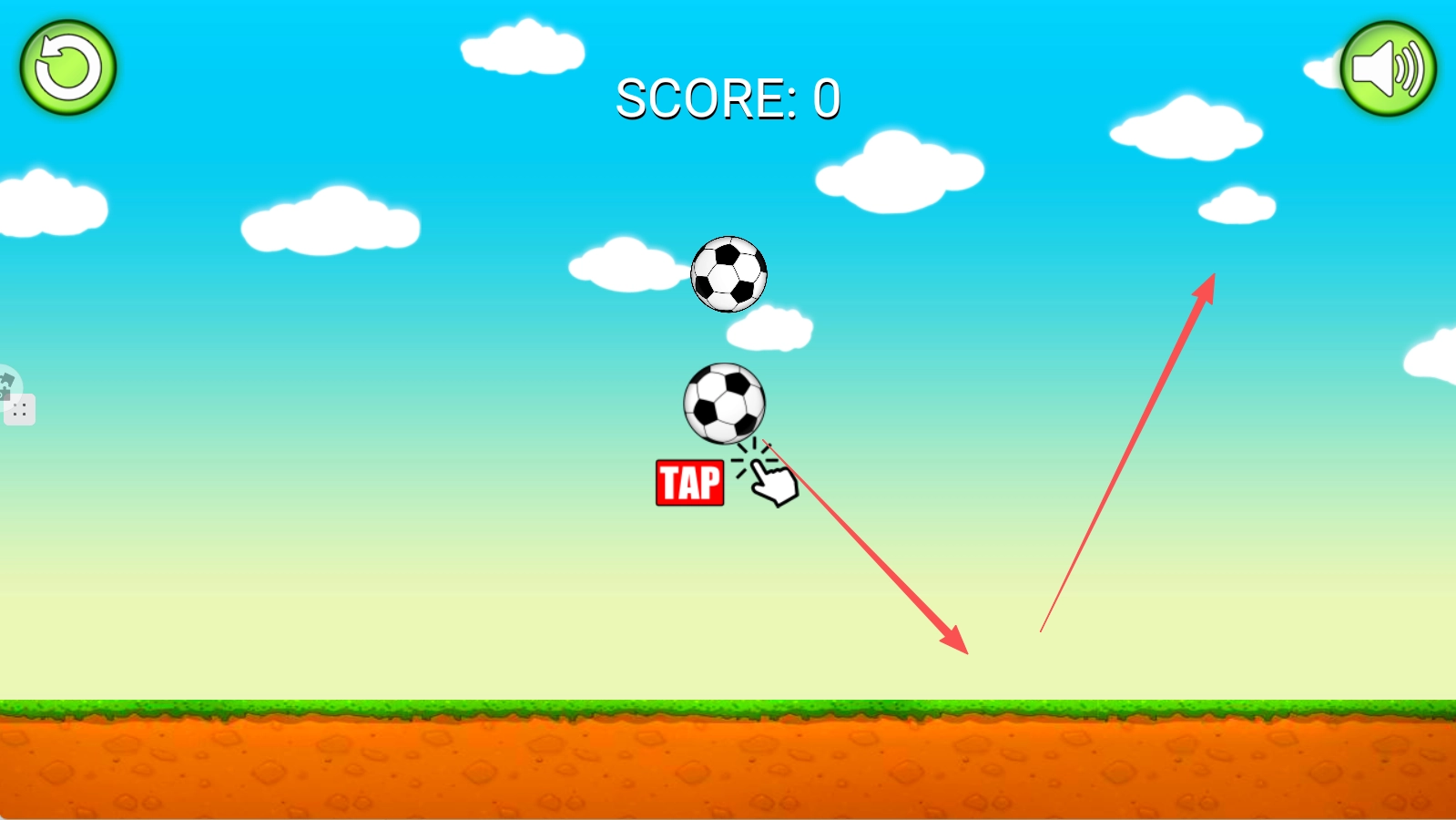2、关卡里有很多高低不同的管道,要让足球在不碰到管道的情况下前进。