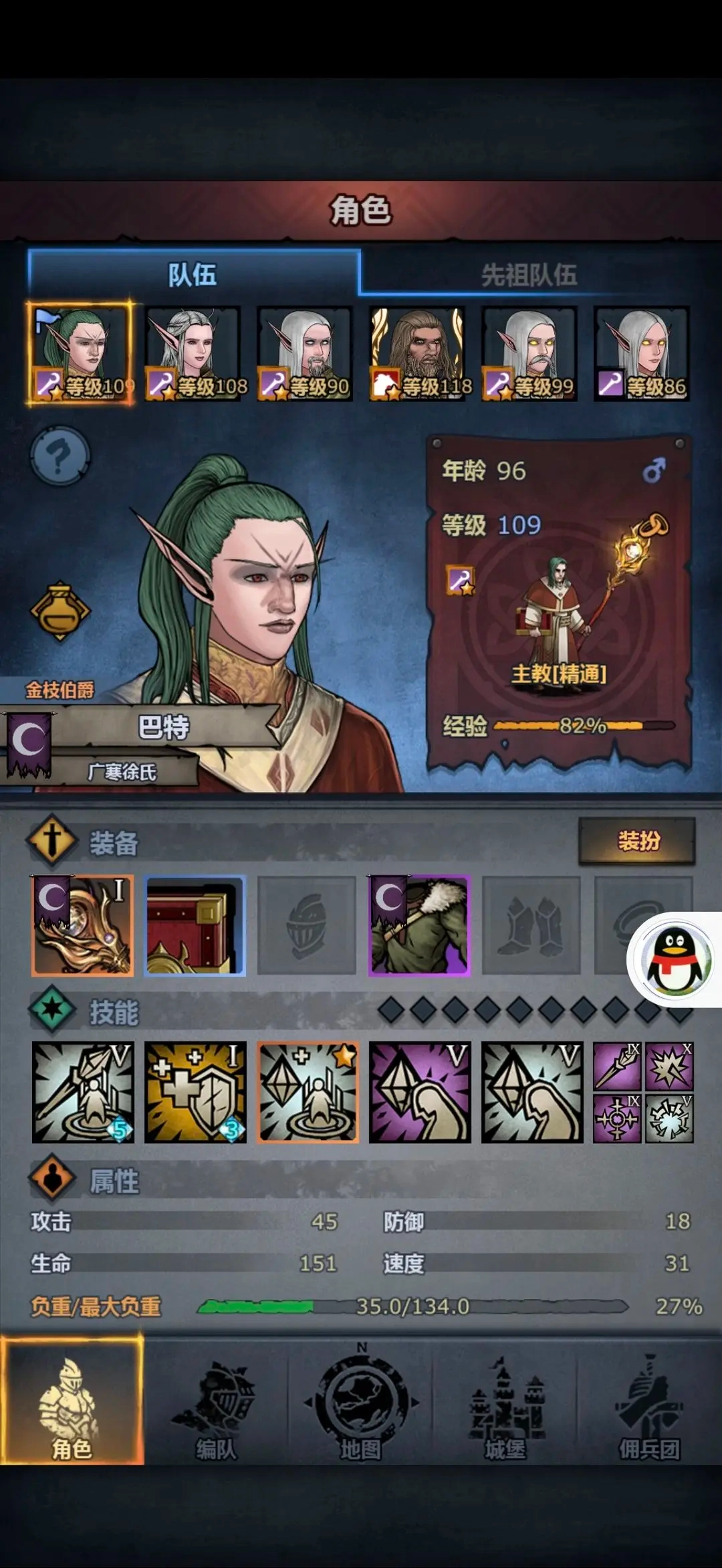 技能:屠杀战意(刺客)、长虹贯日(内宗剑圣,推塔带)/疾旋之翼、狩猎欲望(弓箭手)、信仰唤醒(主教)、蛮力、复仇、精准、残忍