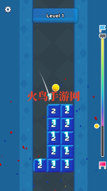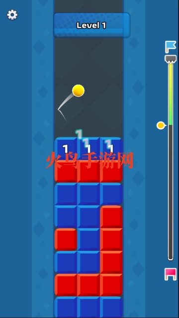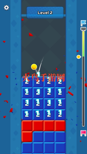 2,球会下落,同颜色的方块上的数字减小