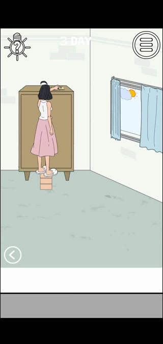 第三关,这关共有两个房间,首先玩家在前一个房间里面扯掉海报,点击获取里面的三块砖头,然后进入下一个房间,将砖头依次叠加起来(注意若取的多了就会触发隔壁女生的暴脾气,及闯关失败)。