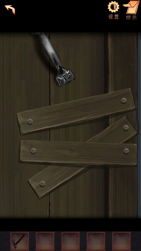 5、拿起道具羊角锤,对着门木板上的钉子操作,随后房门便会打开。