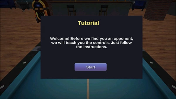 1. 打开3D台球游戏手机版,点击“Start”启动,随即会进入新手引导教程。