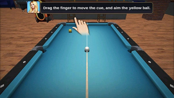 2. 通过手指在屏幕上滑动,操控白球移动,并朝着黄球的方向调整角度。