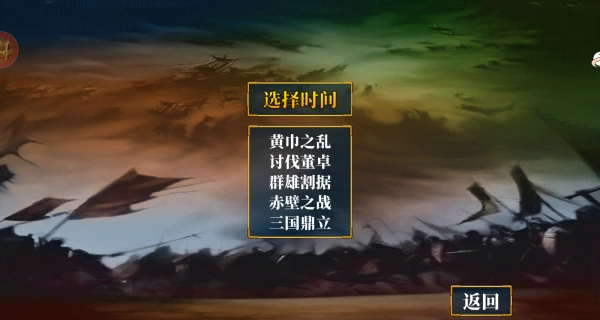 2、接下来选择时间,包含了不同的历史阶段,比如黄巾之乱、讨伐董卓等等。