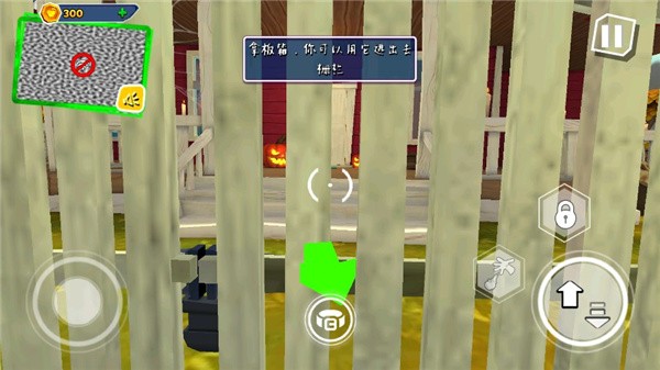 7、点击【跳跃】按钮,即可借助木箱的高度,轻松越过栅栏。