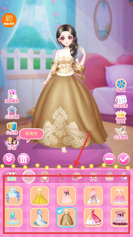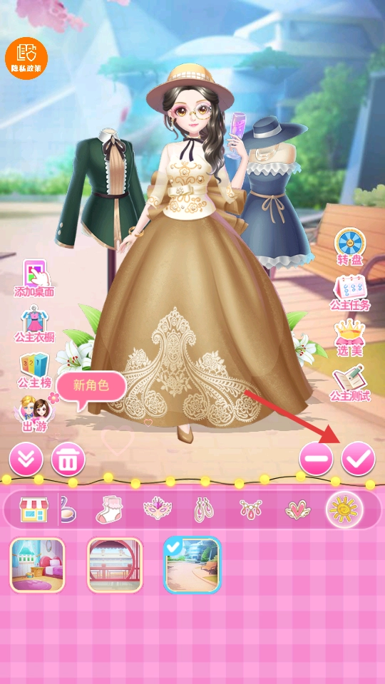 2. 在下方衣柜中挑选服装与配饰(像裙子、帽子之类),用以搭配角色造型。