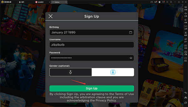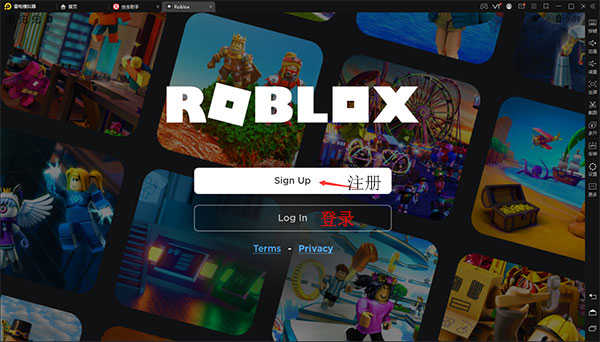 1、第一步,在本站的roblox罗布乐思游戏中,进入游戏界面后,点击“注册账号”选项。